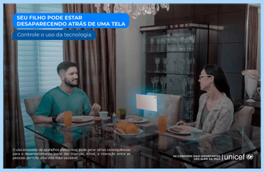 As conexões mais importantes vão além da tela” é um projeto desenvolvido na disciplina de Audiovisual da ESPM, em parceria com a UNICEF. A campanha tem como objetivo conscientizar os pais sobre as consequências sociais do uso excessivo de tecnologia pelas crianças.