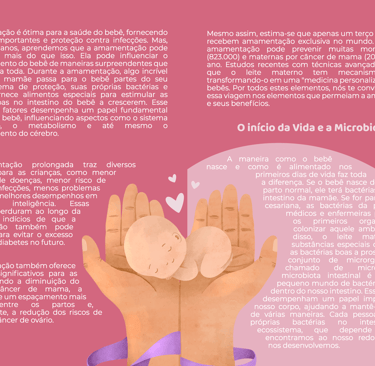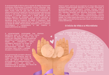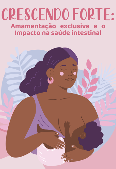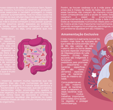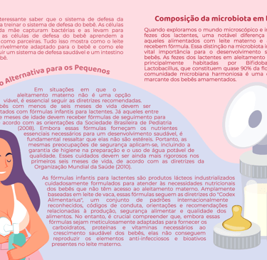 E-book desenvolvido com apresentação gráfica para uma estudante de Mestrado, explorando temas como Saúde Intestinal e Amamentação Exclusiva.
