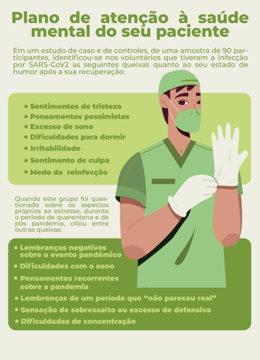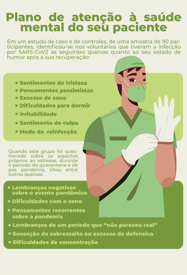 Criação de cards explorando os impactos da Covid-19 na saúde mental dos pacientes, desenvolvidos para uma apresentação de Mestrado em Psicologia.