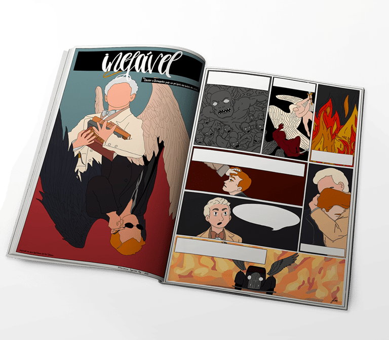 Ilustração desenvolvida na disciplina de História em Quadrinhos da ESPM, inspirada na série Good Omens, de Neil Gaiman, disponível na Amazon.