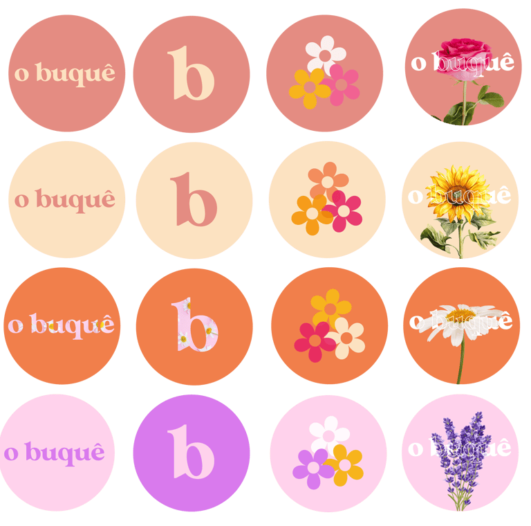 Criação de marca para uma floricultura, com ícones para redes sociais, cores e fontes pensadas para construir uma identidade visual harmoniosa.